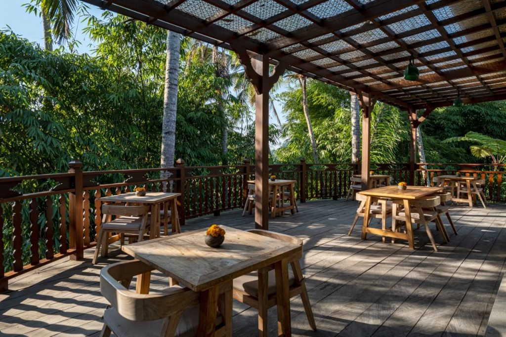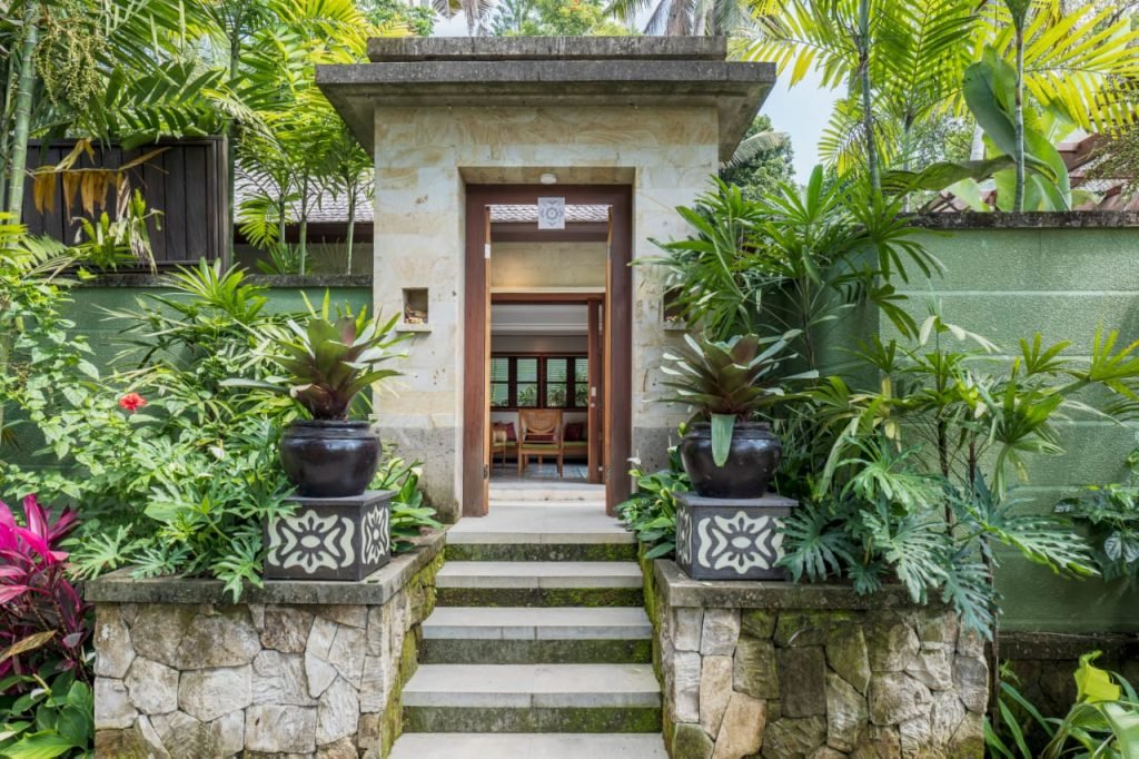 Resort yang terletak di Ubud, Bali ini dikelilingi pemandangan tanaman hijau yang memukau. Selain fungsinya sebagai peneduh, tanaman juga merupakan sumber produksi oksigen dan dapat menyerap polusi udara sehingga udara di sekitarnya terasa lebih segar, warna hijau yang disajikan oleh tanaman pun terasa menyejukkan mata. Berada di atas lahan seluas 6300m2 bangunan vila yang memiliki fasilitas enam bangunan vila, hotel tiga lantai dengan kapasitas 27 kamar serta fasilitas lainnya tersebut, memanfaatkan sekitar 65% dari total luas untuk area terbuka hijau. Alam Ubud yang indah dan udara yang sejuk merupakan aset alam yang mendukung sehingga bagi desainer sangat memudahkan ketika menerapkan konsep secara keseluruhan di kawasan ini. Menyatu dengan alam sekitar merupakan konsep landscape serta bangunan yang diterapkan di vila ini, baik dalam pemilihan material pengerasannya, pemilihan jenis tanaman, juga pemilihan material arsitektur dan interiornya.
