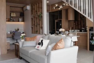 Hunian ini dirancang oleh Nataneka Arsitek Asimetris dengan mengusung konsep Earthy Modern dengan menampilkan nuansa alami dalam balutan arsitektur tropis modern. Penerapan pencahayaan alami, sirkulasi udara yang optimal, serta penggunaan material bernuansa natural menciptakan suasana hunian yang hangat, sehat, dan menenangkan.