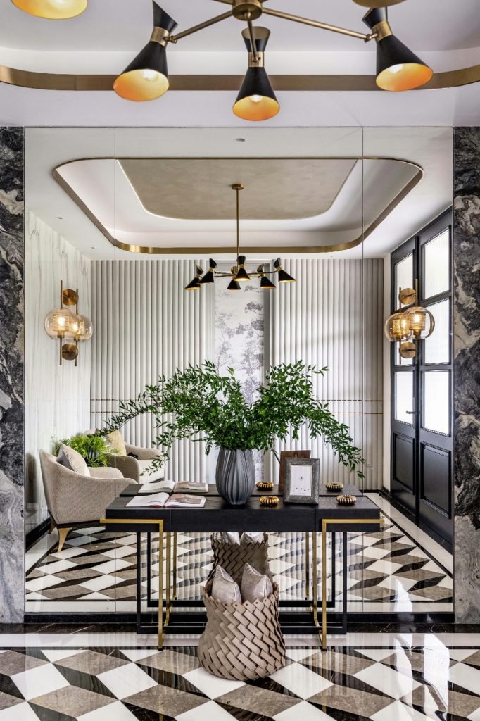 The design grew out of a desire to exhibit the glamour and versatile expression of marbles while imbues an urban and modern sanctuary.